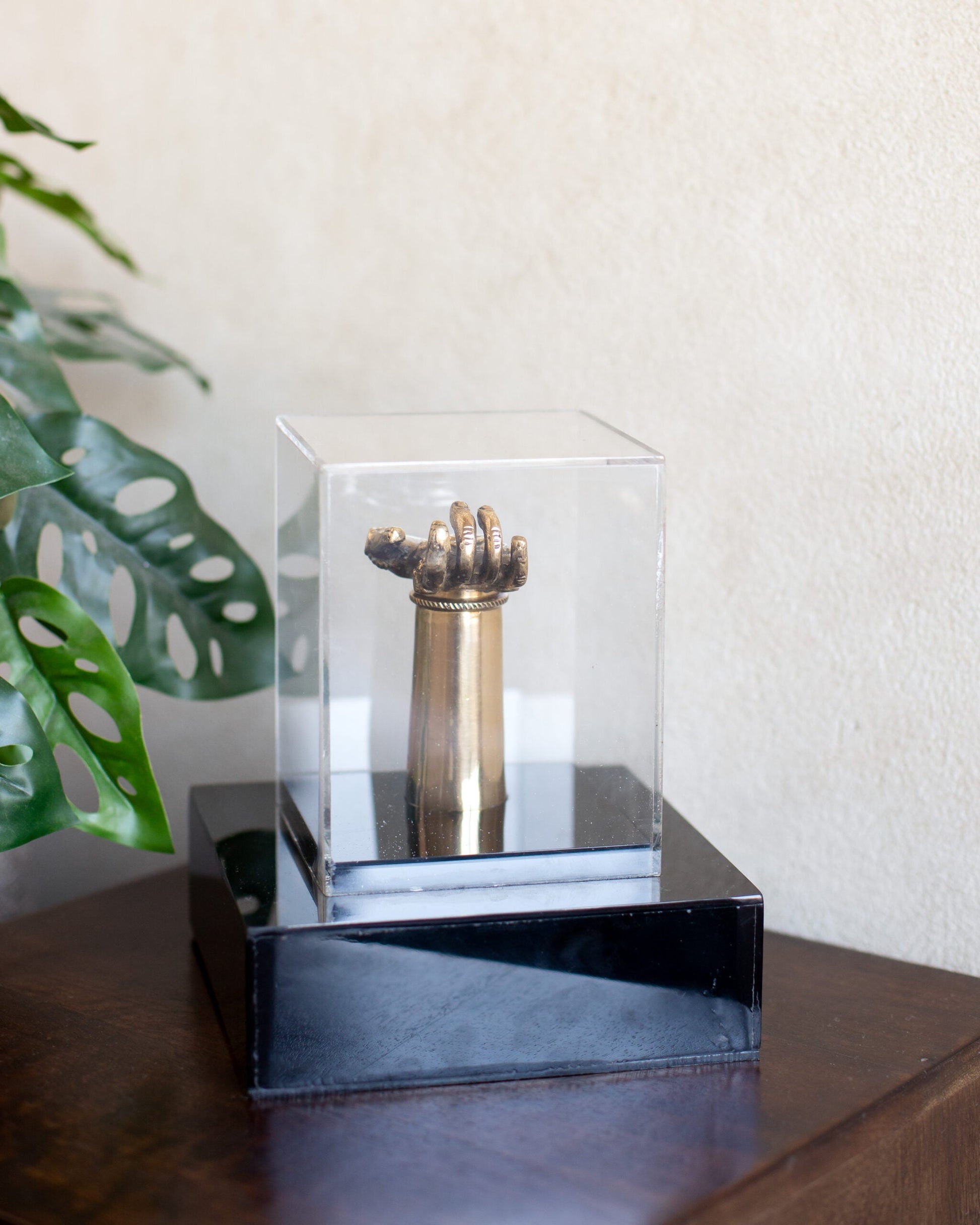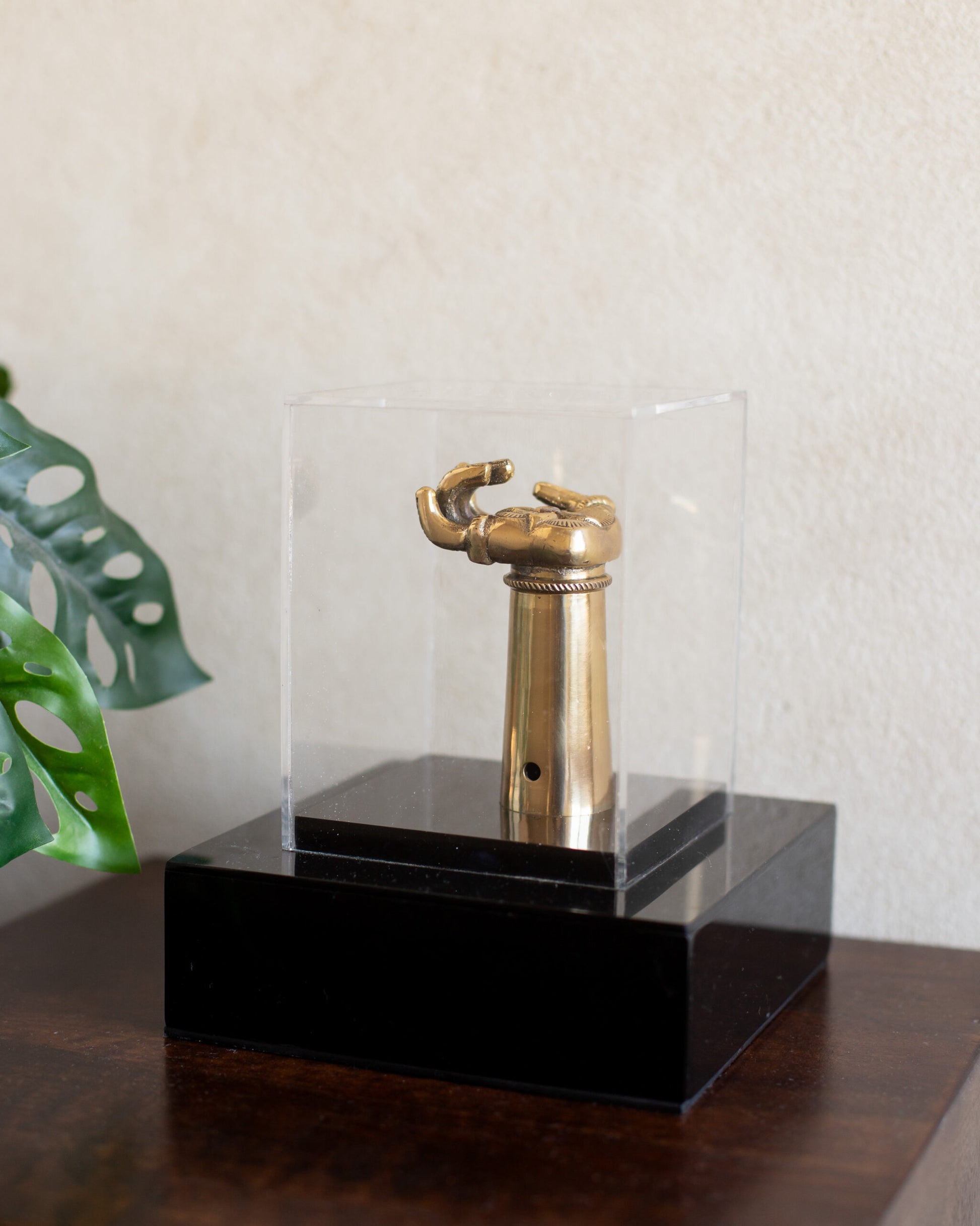 Embodying the sacred Abhayamudra, the Abhayahastham brass hand is a powerful symbol of protection, reassurance, and fearlessness. Encased in an elegant acrylic box, this exquisite piece is a timeless representation of divine blessing found in Hinduism and Buddhism. Perfect for homes, temples, or sacred spaces, it radiates spiritual serenity and grace.
