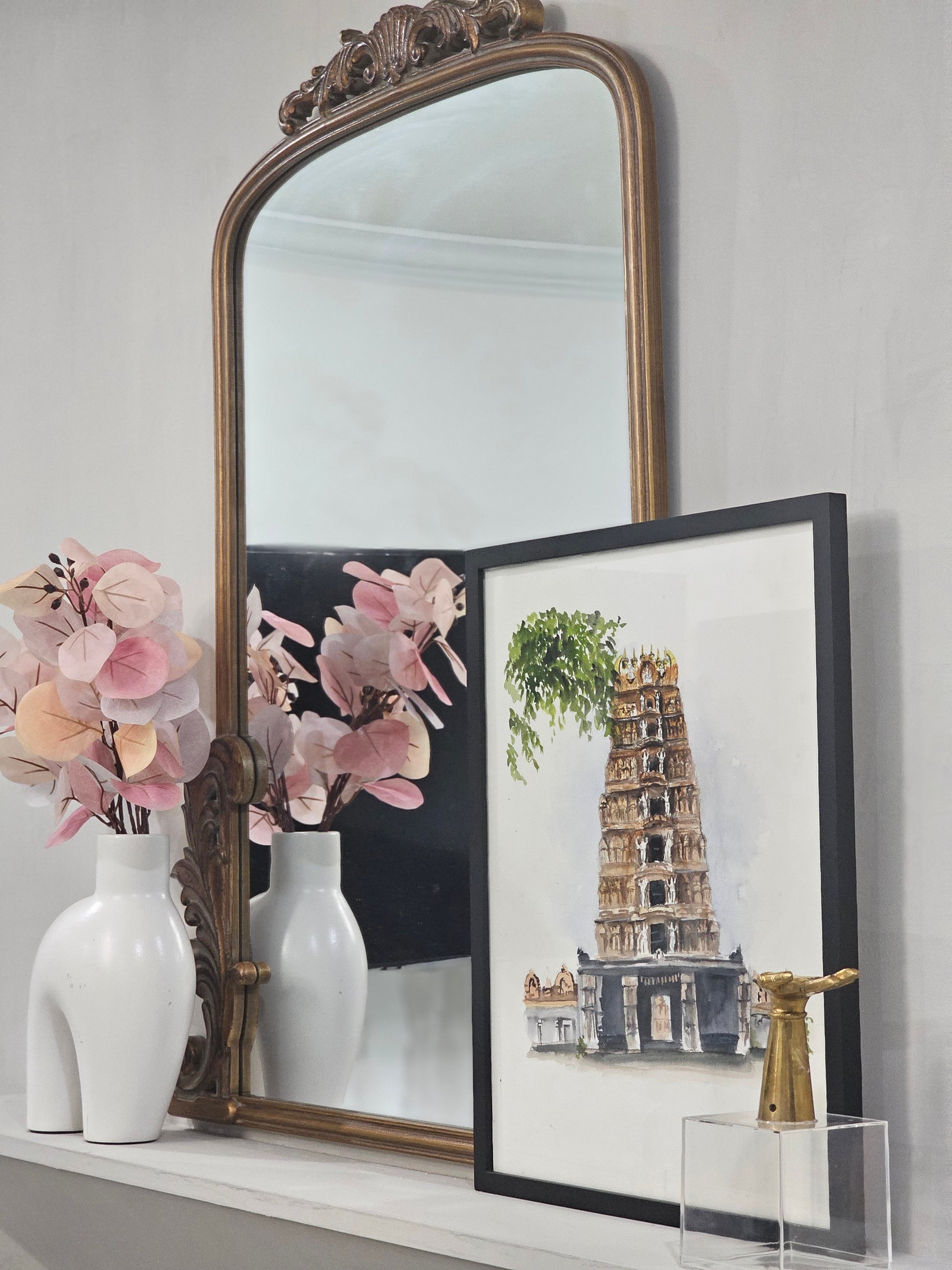 - Display it on a console table with fresh flowers and a framed deity print for a serene welcome.