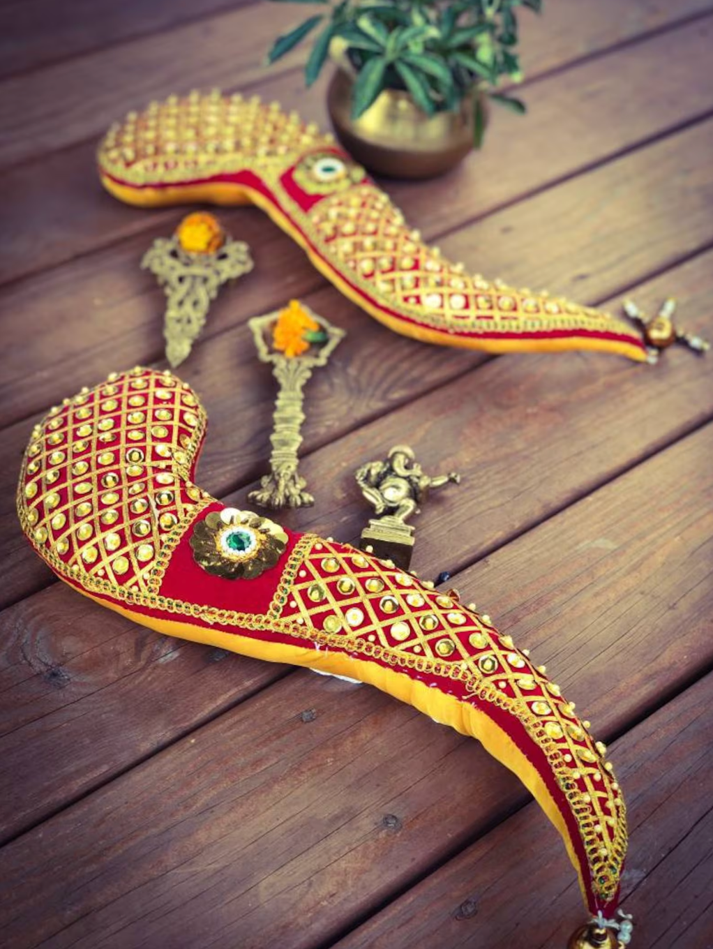 Enhance the divine presence of your goddess idol with Divya Bhujalu — a pair of beautifully crafted fabric arms designed specifically for Ammavaru alankaram. These soft, flexible arms are made with traditional fabrics and finished with ornamental cuffs to seamlessly blend with your deity’s vastram (attire).