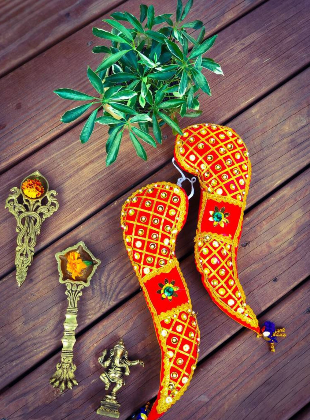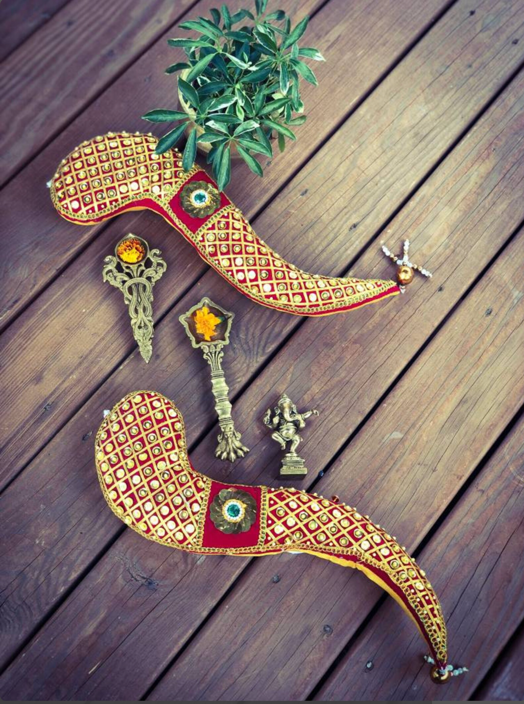 Complete your deity’s alankaram by placing the these symmetrically on either side of the idol’s arms or backdrop.