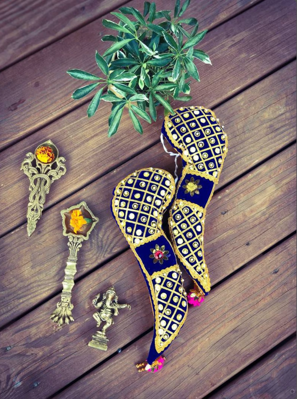 These side hands look divine hen paired with silk vastram and fresh flower malas. Add a soft spotlight or oil lamp glow to highlight the metallic shine and intricate detailing of the brass.