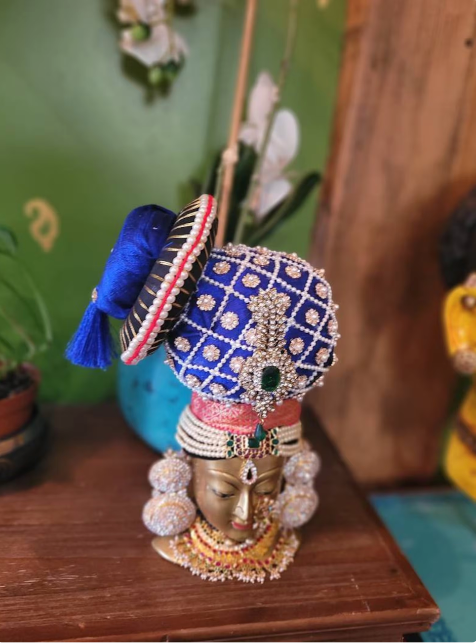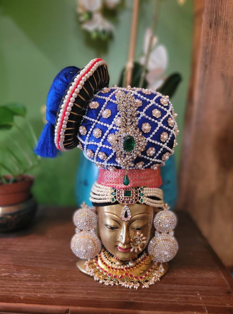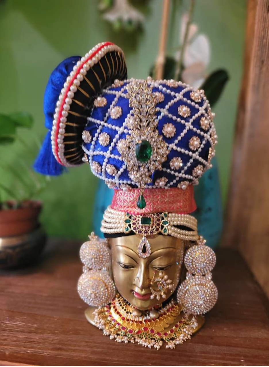 Adorn your beloved deity with the timeless grace of the Mutyam Kiritam, a handcrafted pearl crown symbolizing purity, divinity, and serenity. Inspired by temple traditions and devotional artistry, this exquisite crown is adorned with lustrous faux pearls intricately arranged to reflect divine elegance.