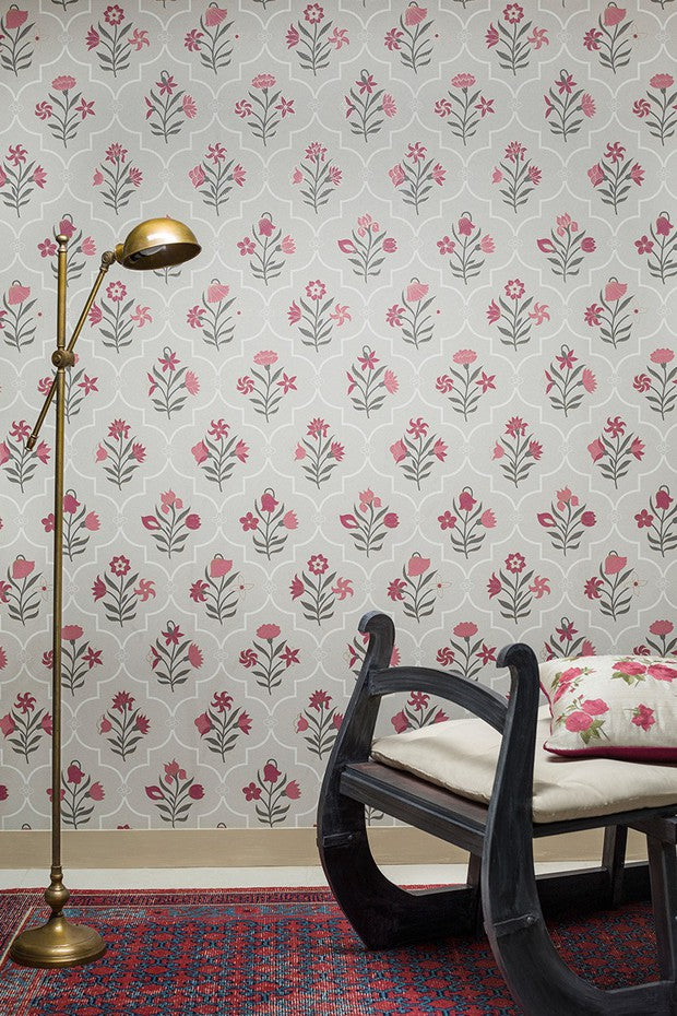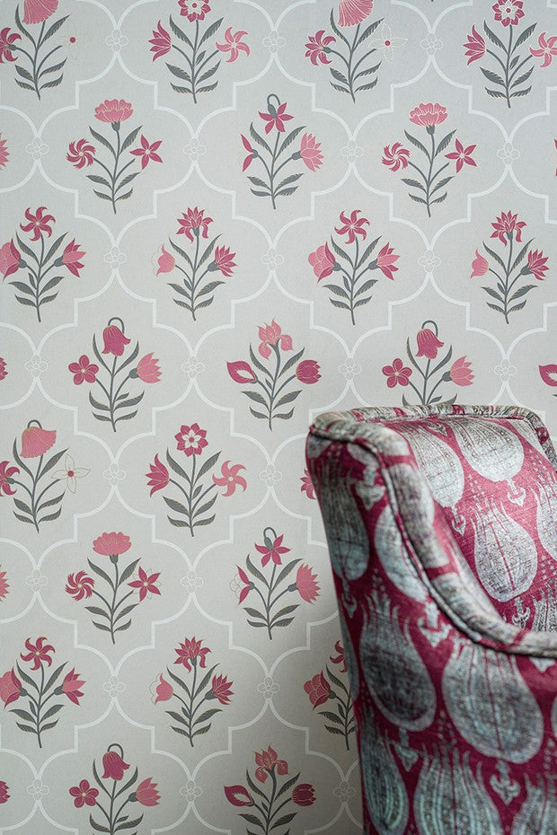 Good Earth x Nilaya brings the lush geometry of Mughal gardens to life with Charbagh — an ode to the Persian concept of paradise gardens. These wallpapers feature delicate florals framed by latticed jaalis and elegant chevrons, echoing the intricate craftsmanship of historical architecture. This is where design meets poetry—inviting serenity, symmetry, and timeless Indian heritage into your space.
