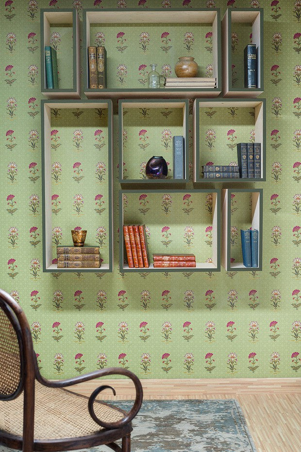 Good Earth x Nilaya brings the lush geometry of Mughal gardens to life with Charbagh — an ode to the Persian concept of paradise gardens. These wallpapers feature delicate florals framed by latticed jaalis and elegant chevrons, echoing the intricate craftsmanship of historical architecture. This is where design meets poetry—inviting serenity, symmetry, and timeless Indian heritage into your space.