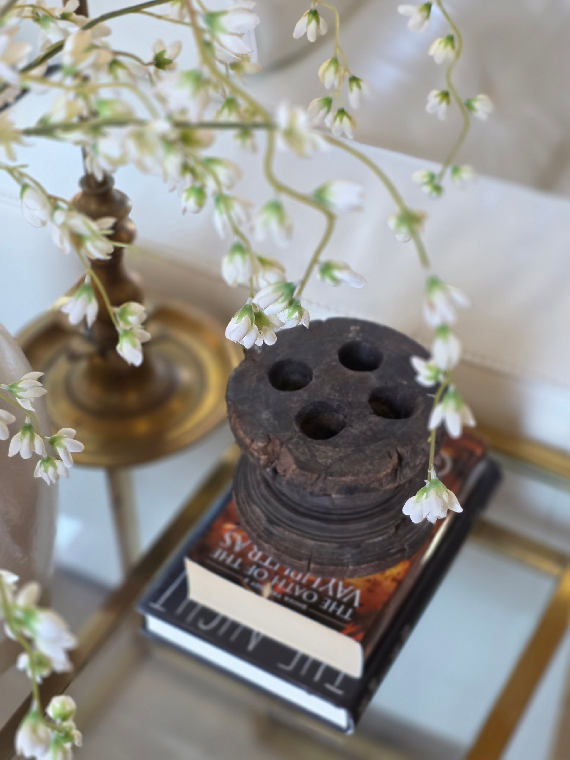 Repurposed from its origins in Indian farming, this rustic seeder transforms into a charming decorative accent for your space. Handcrafted from solid wood, each piece boasts unique character, with some featuring intricate hand-carved details. Imperfections and worn textures only enhance its distinct beauty, making it perfect as a candle holder, botanical display, or conversation-starting centerpiece.