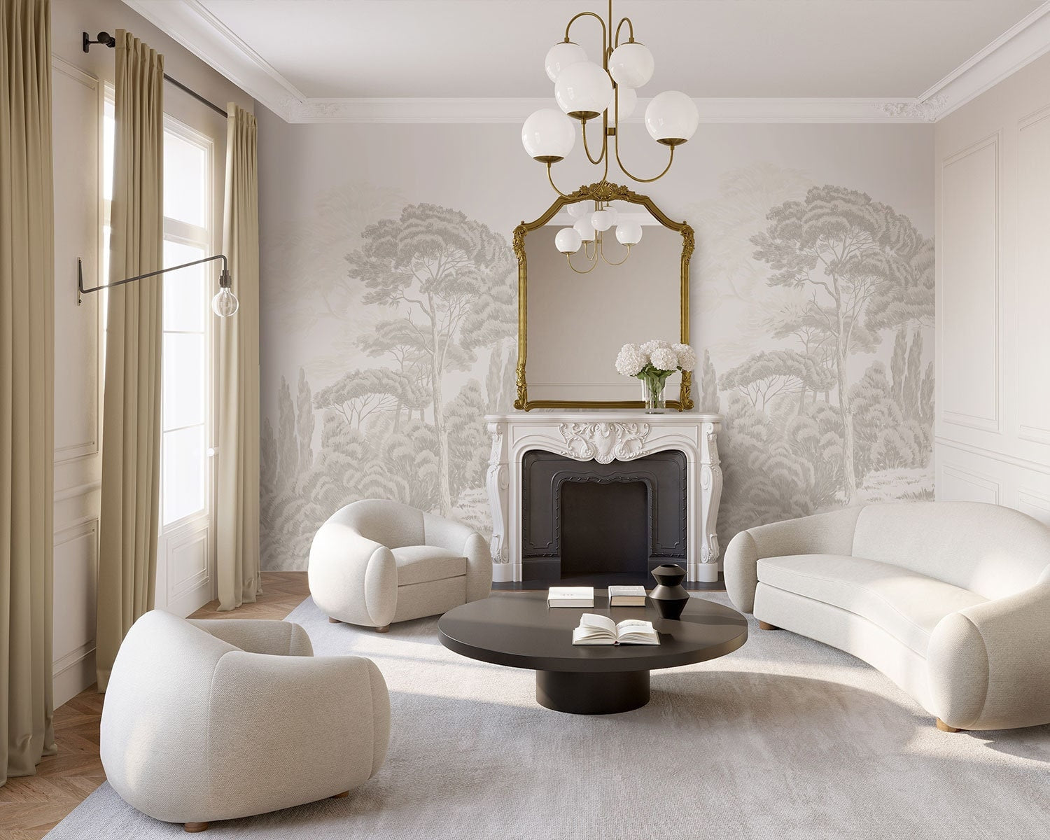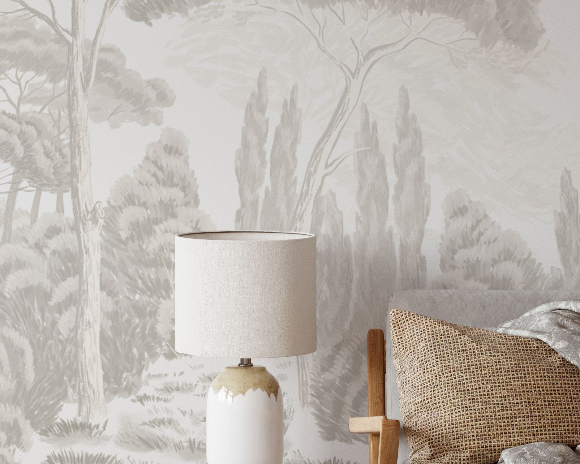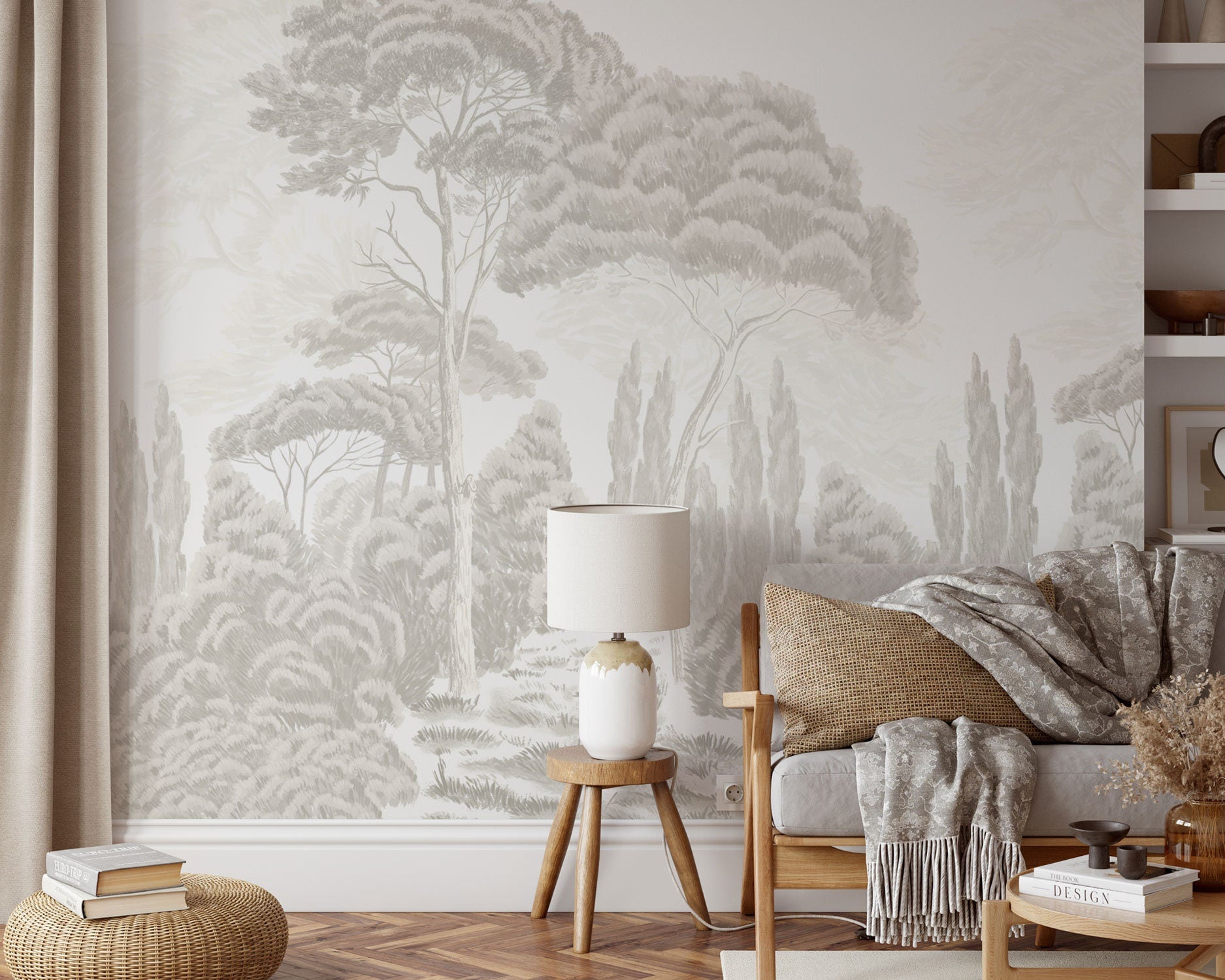 Bring the calm of the forest into your space with this hand-painted watercolor mural featuring elegant cypress trees in soft beige and white tones. Designed to add depth and serenity, this wallpaper transforms your wall into a quiet grove of tall, graceful trees — a perfect backdrop for both modern and rustic interiors.