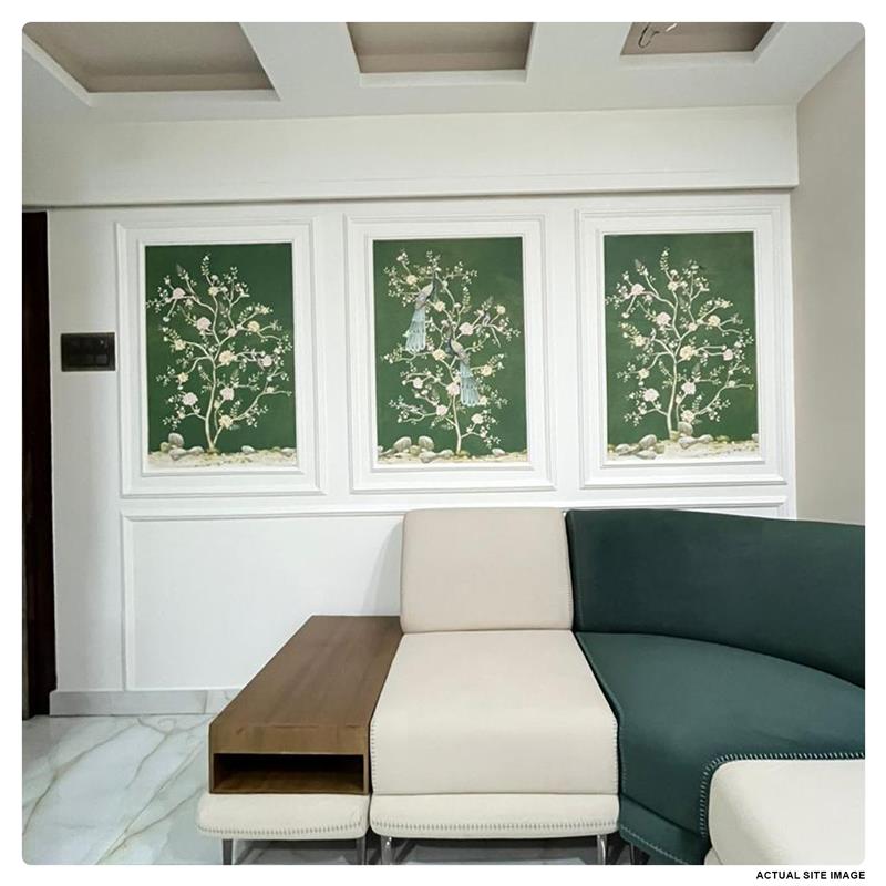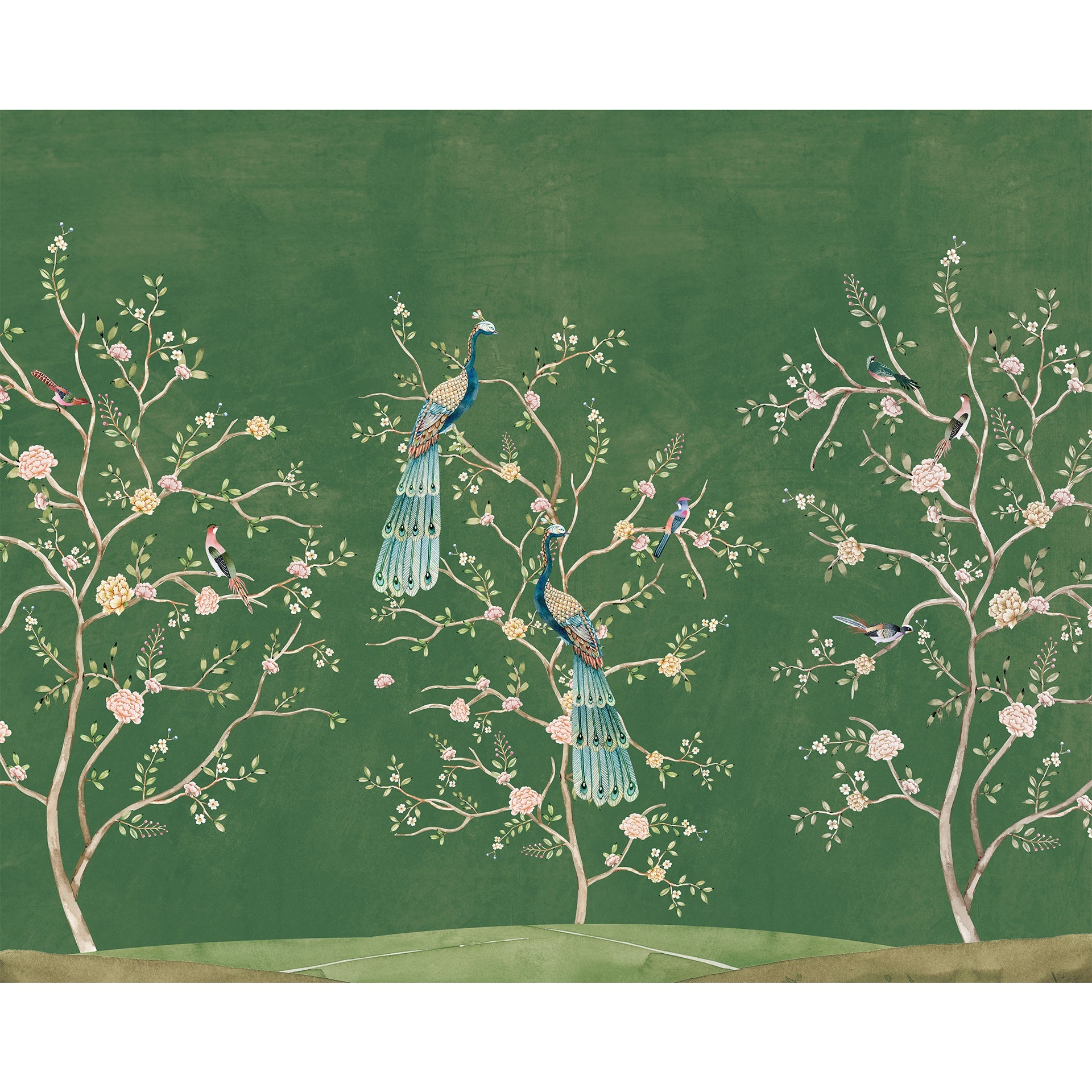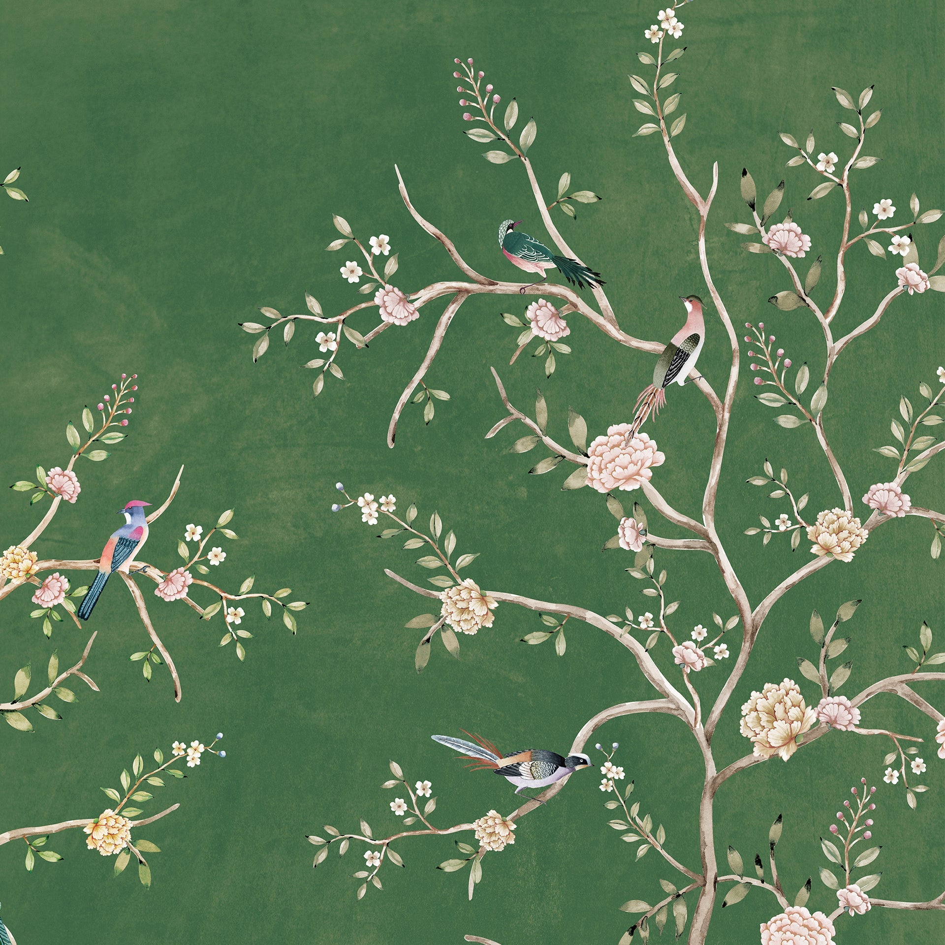 Dark Chinoiserie floral wallpaper featuring elegant peacock motifs. Perfect for accent walls or statement rooms, this wallpaper blends botanical luxury with traditional Asian art. Ideal for living rooms, bedrooms, or dining areas seeking a dramatic, nature-inspired aesthetic.