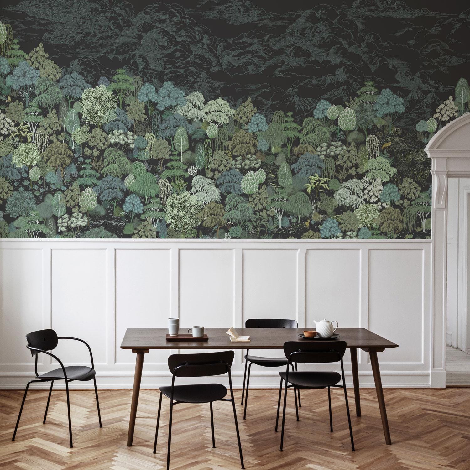 Elegant and richly layered, this forest wallpaper brings bold botanical drama to your interior. Featuring hand-drawn foliage in deep, moody green tones, it’s designed to create a statement—whether you're transforming a bedroom wall, elevating a bathroom, or adding contrast in a modern dining space.