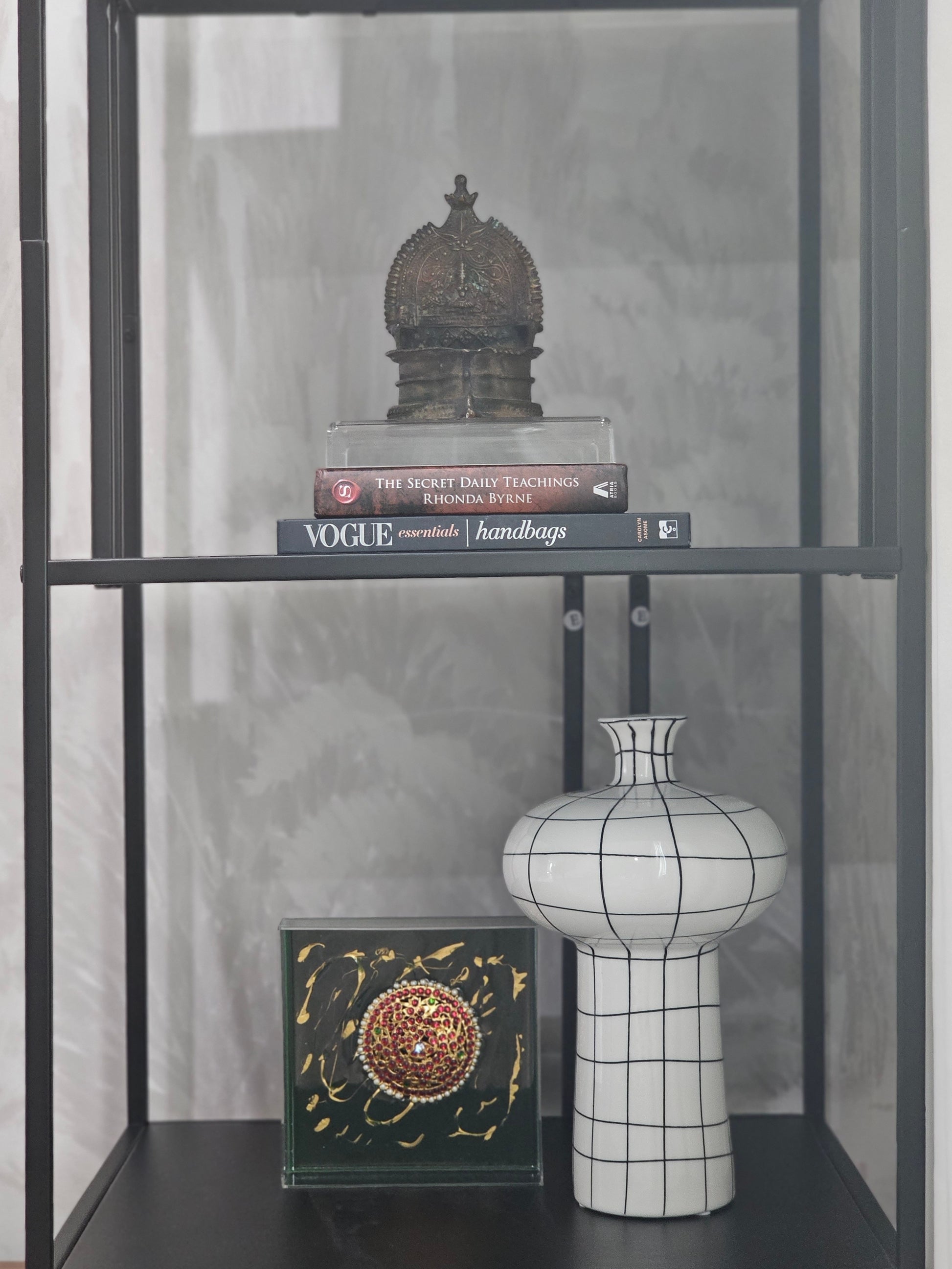 - On any tabletop or sideboard, let it shine solo or nestled in a tray with incense and sacred beads to create a calming, heritage-inspired vignette.