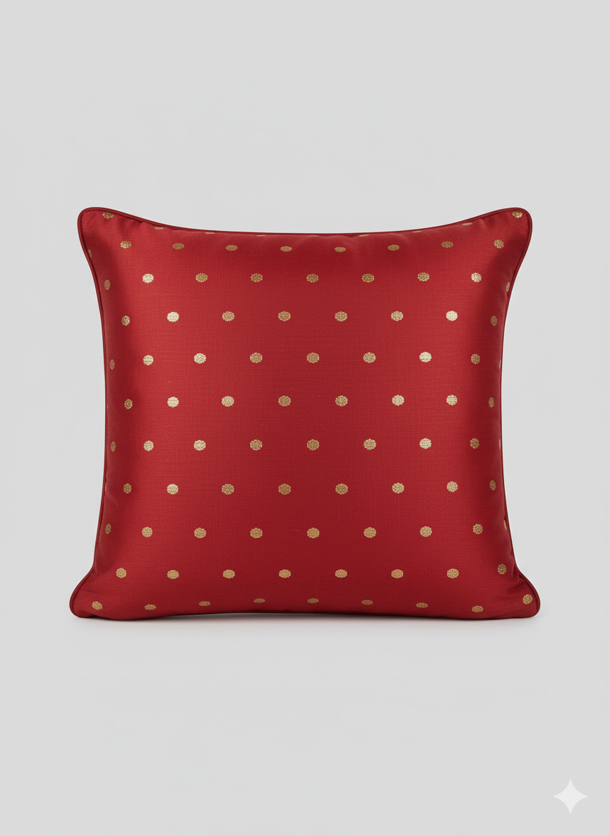 A celebration of richness and refinement, the Kanaka Mugdha collection brings together the timeless glow of traditional gold motifs with the sleek sophistication of modern silk decor. Every cushion cover pairs luminous zari-inspired prints with contemporary silhouettes, creating decor accents that feel both festive and effortlessly stylish. Whether layered into everyday living spaces or reserved for special occasions, this curation adds a touch of regal charm without overpowering the room—making heritage feel beautifully modern.