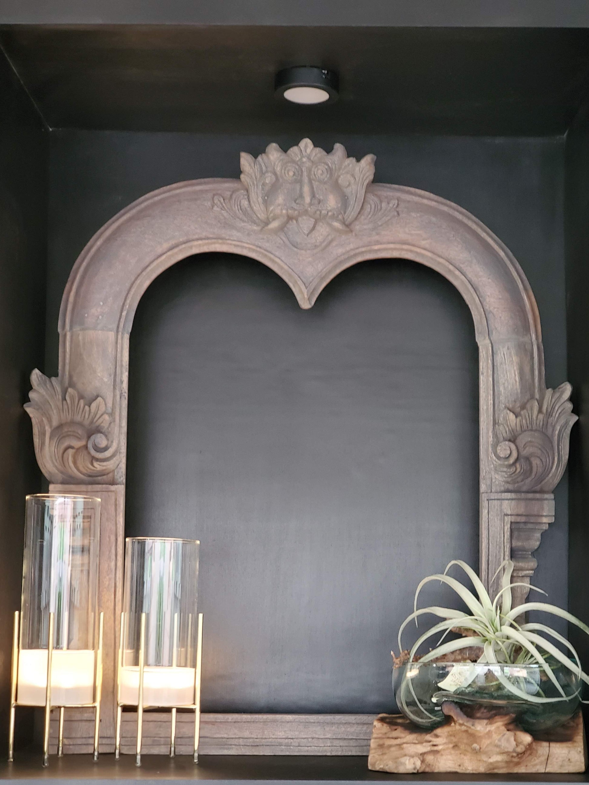 Bring home a timeless piece of Indian heritage with a contemporary twist. This stunning Prabhavali—traditionally used as a decorative arch in temples and spiritual spaces—is handcrafted in wood and finished in an antique gold polish to highlight its intricate carvings and sacred design.