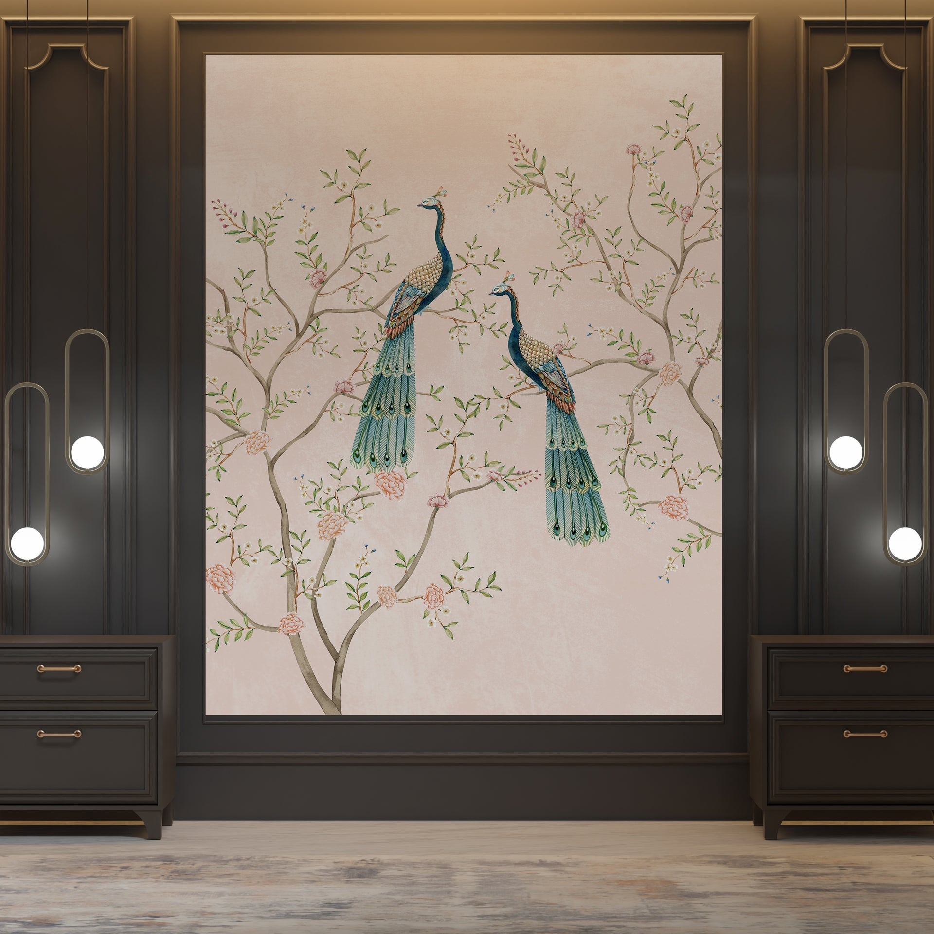 Modern floral wallpaper that blends Eastern-inspired floral patterns with sleek contemporary design. Ideal for feature walls, living rooms, or bedrooms, this wallpaper infuses opulence and modern allure for a captivating ambiance. Perfect for those seeking designer wall treatments with a unique global touch.