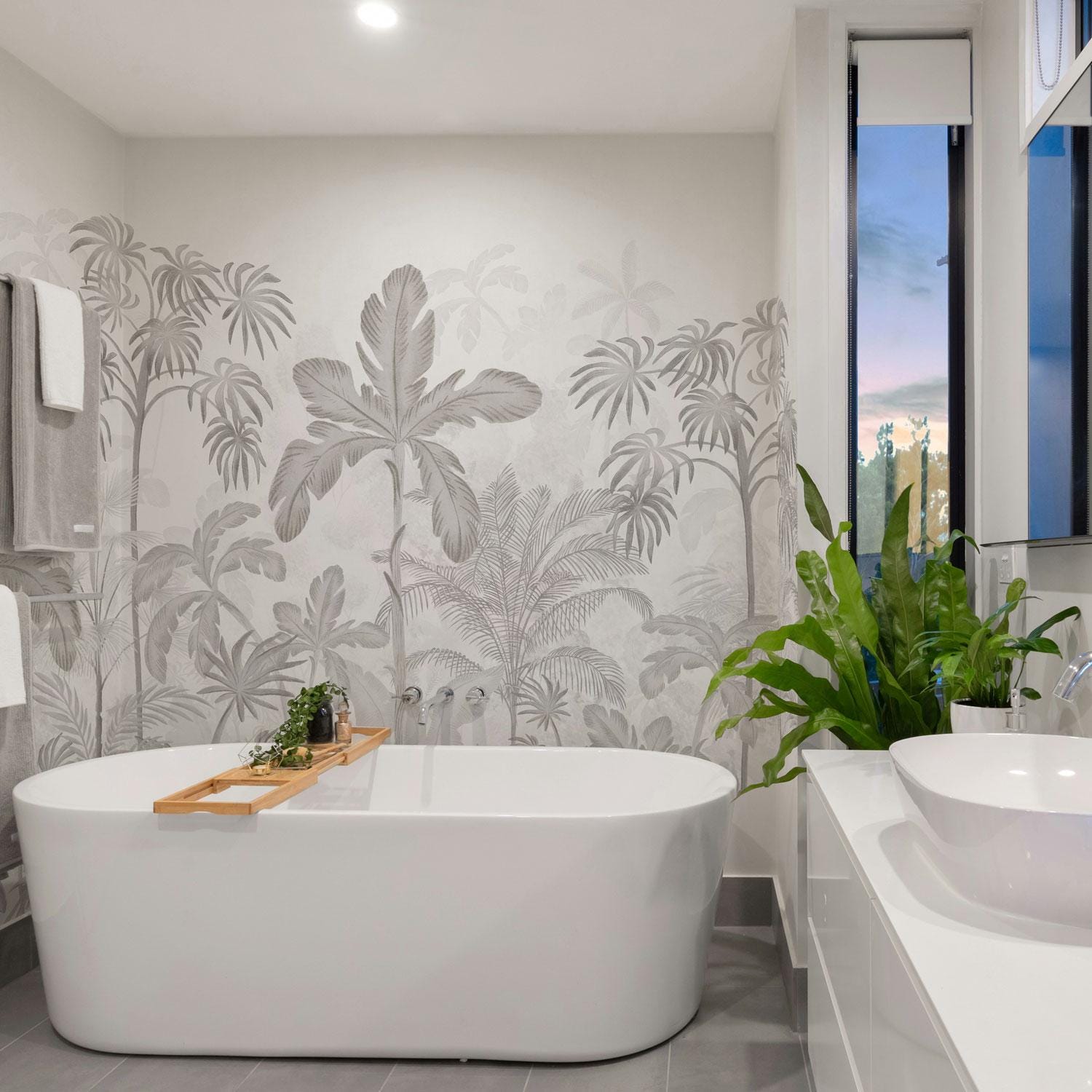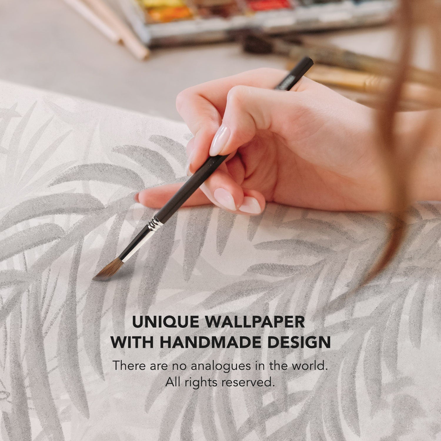 Add subtle drama to your walls with this elegant tropical mural featuring layered palm leaves and delicate botanical silhouettes in soft gray and white. Designed with a minimal yet impactful aesthetic, this wallpaper brings a modern jungle vibe into any space without overwhelming it.