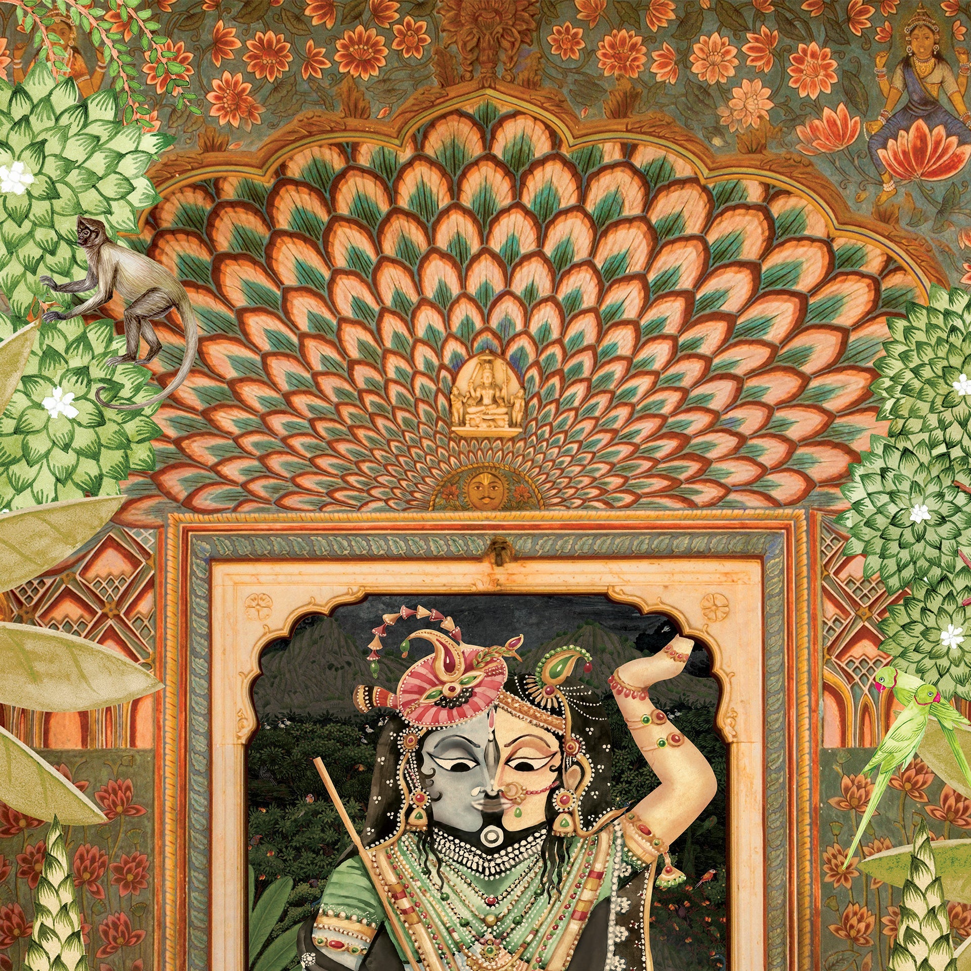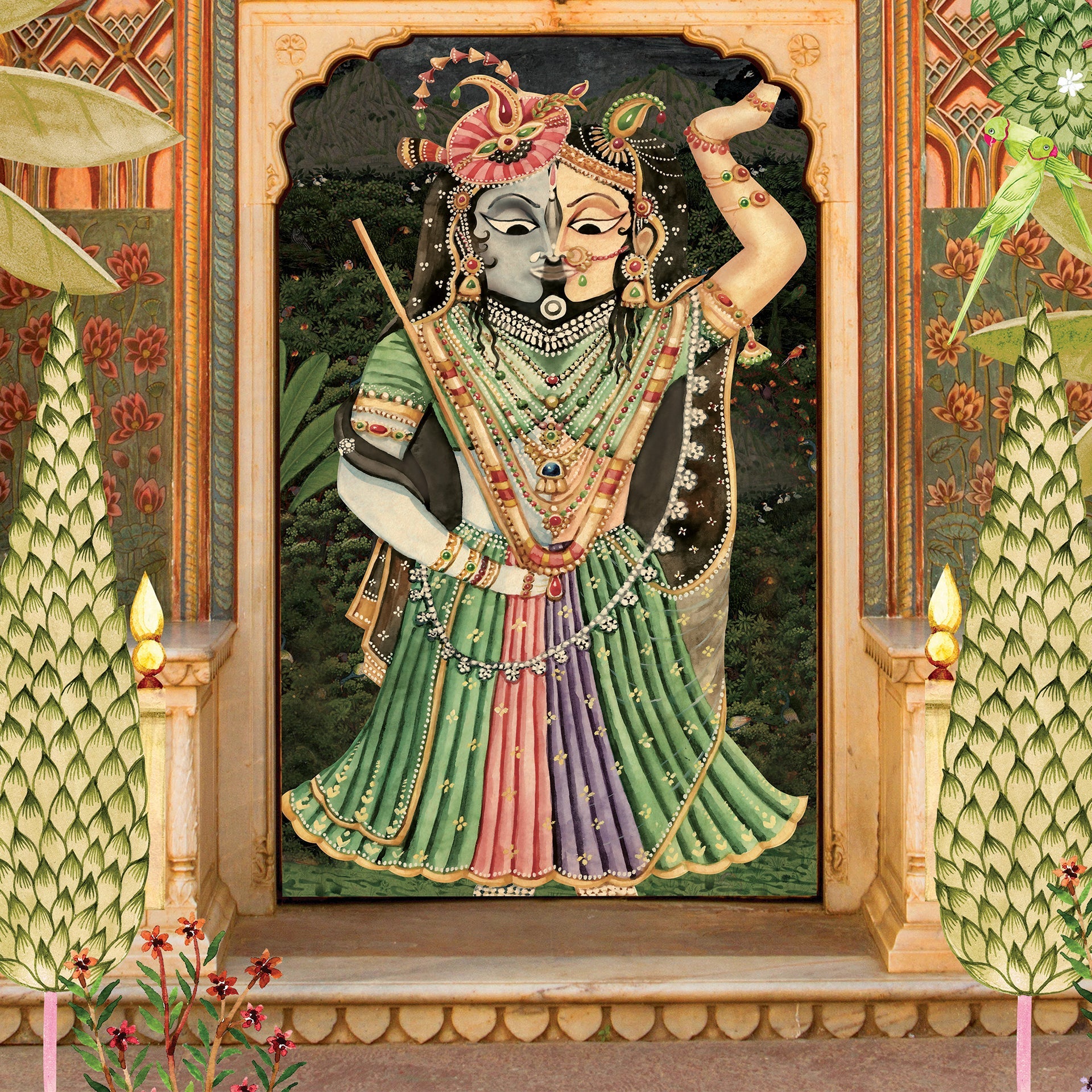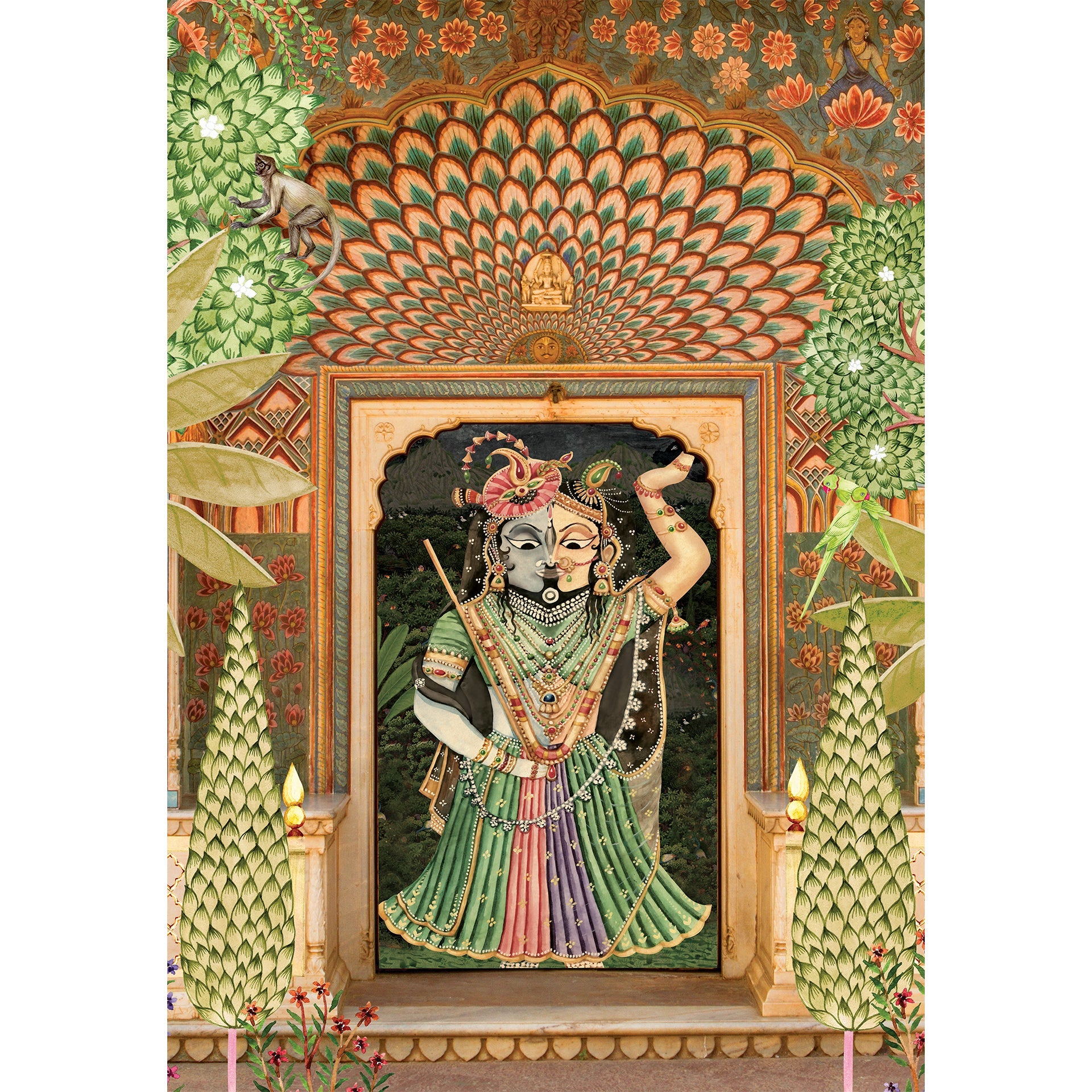 Colorful Pichwai Shreenath ji and yamunaji wallpaper for temple walls or Pooja room.