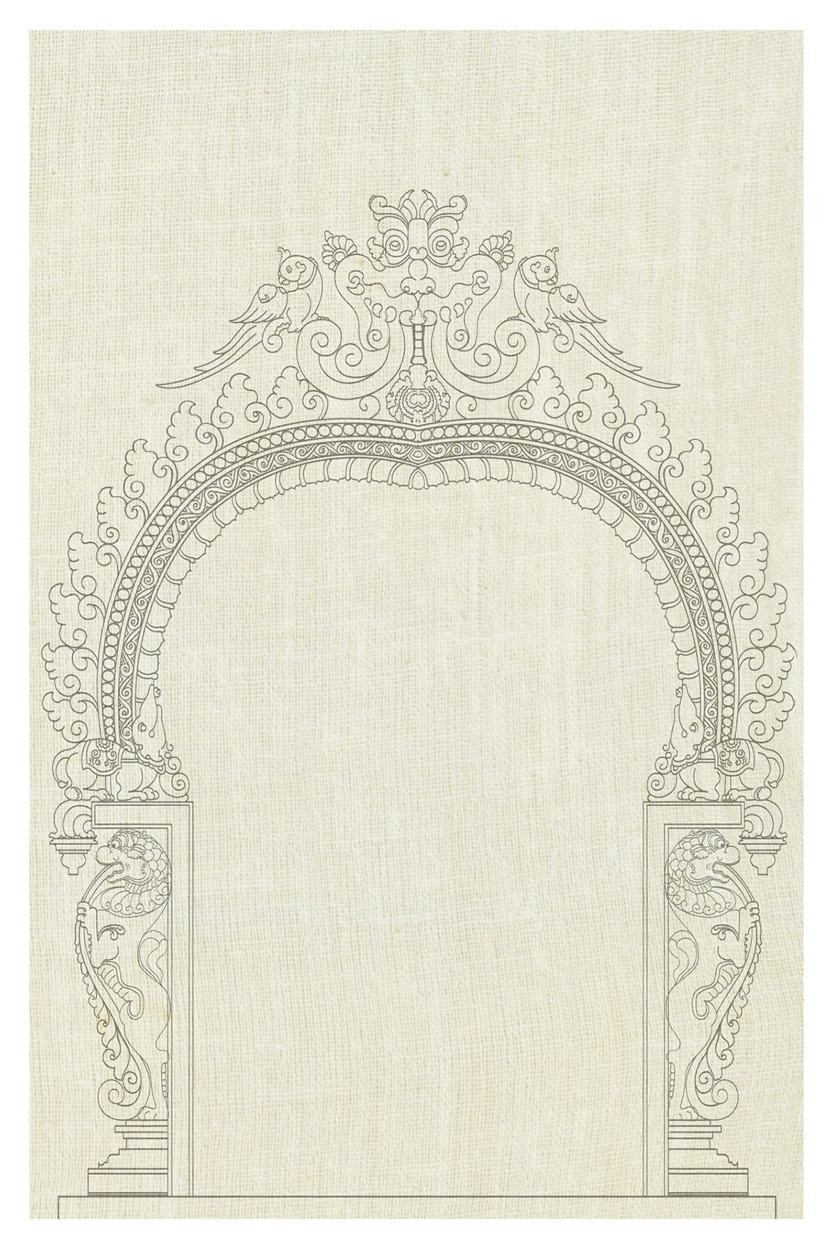 Minimal and precise, this wallpaper transforms the intricate temple arch into a contemporary line illustration on a clean neutral ground. Its understated palette and sketch-like detailing add depth without overwhelming, making it perfect for modern interiors that seek a sophisticated nod to culture. Styled like a gallery etching, it turns a wall into an artistic statement that balances structure with subtle elegance.