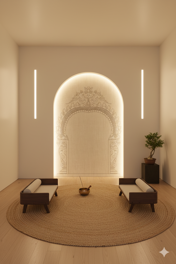 It adapts effortlessly — enhancing puja alcoves, highlighting dining walls, or adding cultural depth to modern living rooms — creating spaces where sacred history flows into present-day elegance.
