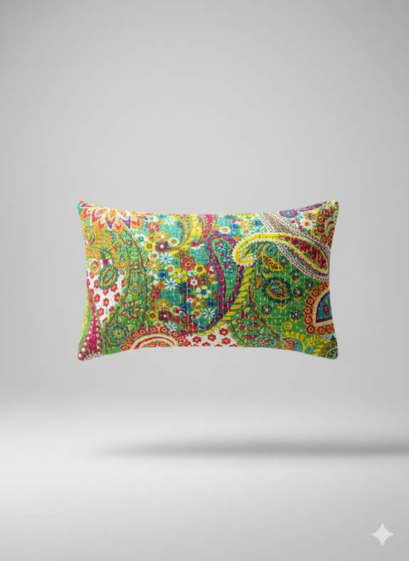 A lively burst of color and pattern, this cushion cover brings together swirling paisley motifs and delicate floral accents in a joyful palette. Its patchwork-inspired look carries a free-spirited charm, blending traditional artistry with a playful modern vibe. Perfect for instantly brightening any corner of your home.