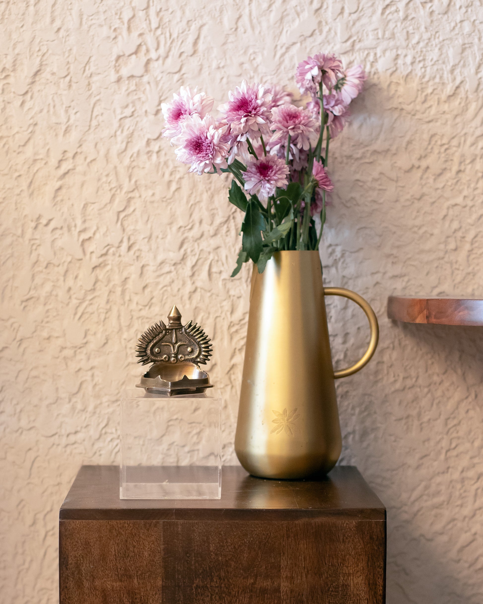 - Display it on a console table with fresh flowers and a framed deity print for a serene welcome.