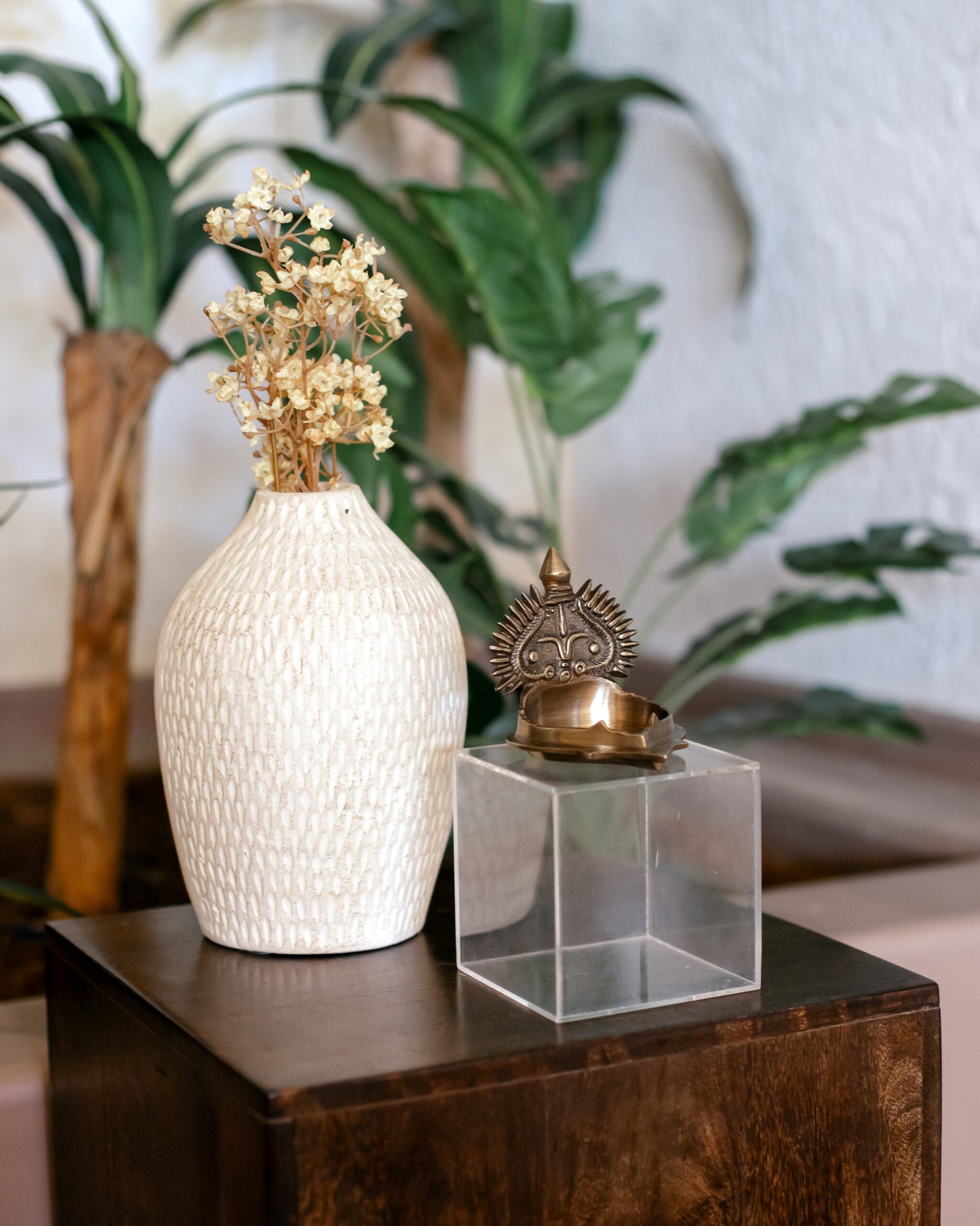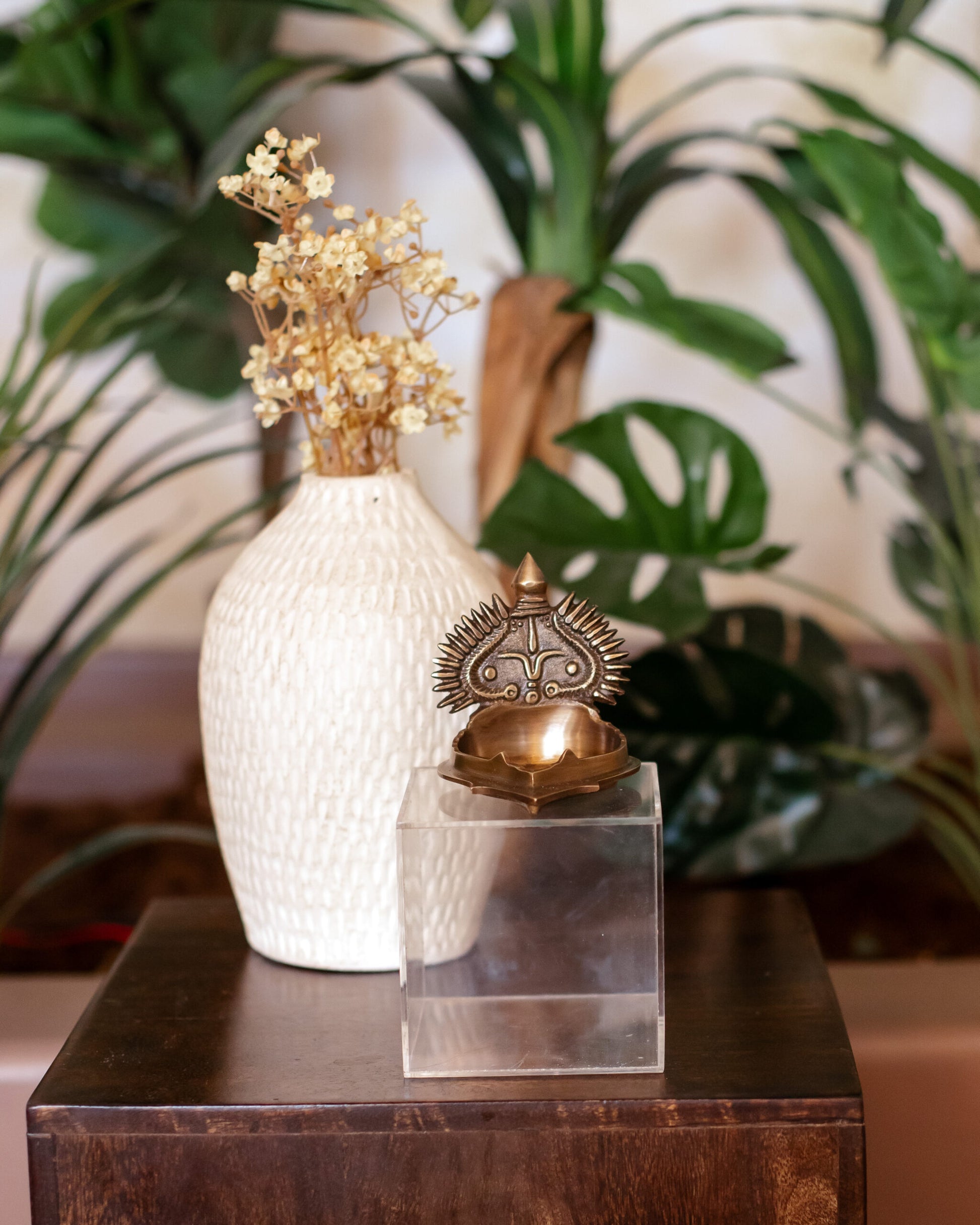 - On any tabletop or sideboard, let it shine solo or nestled in a tray with incense and sacred beads to create a calming, heritage-inspired vignette.