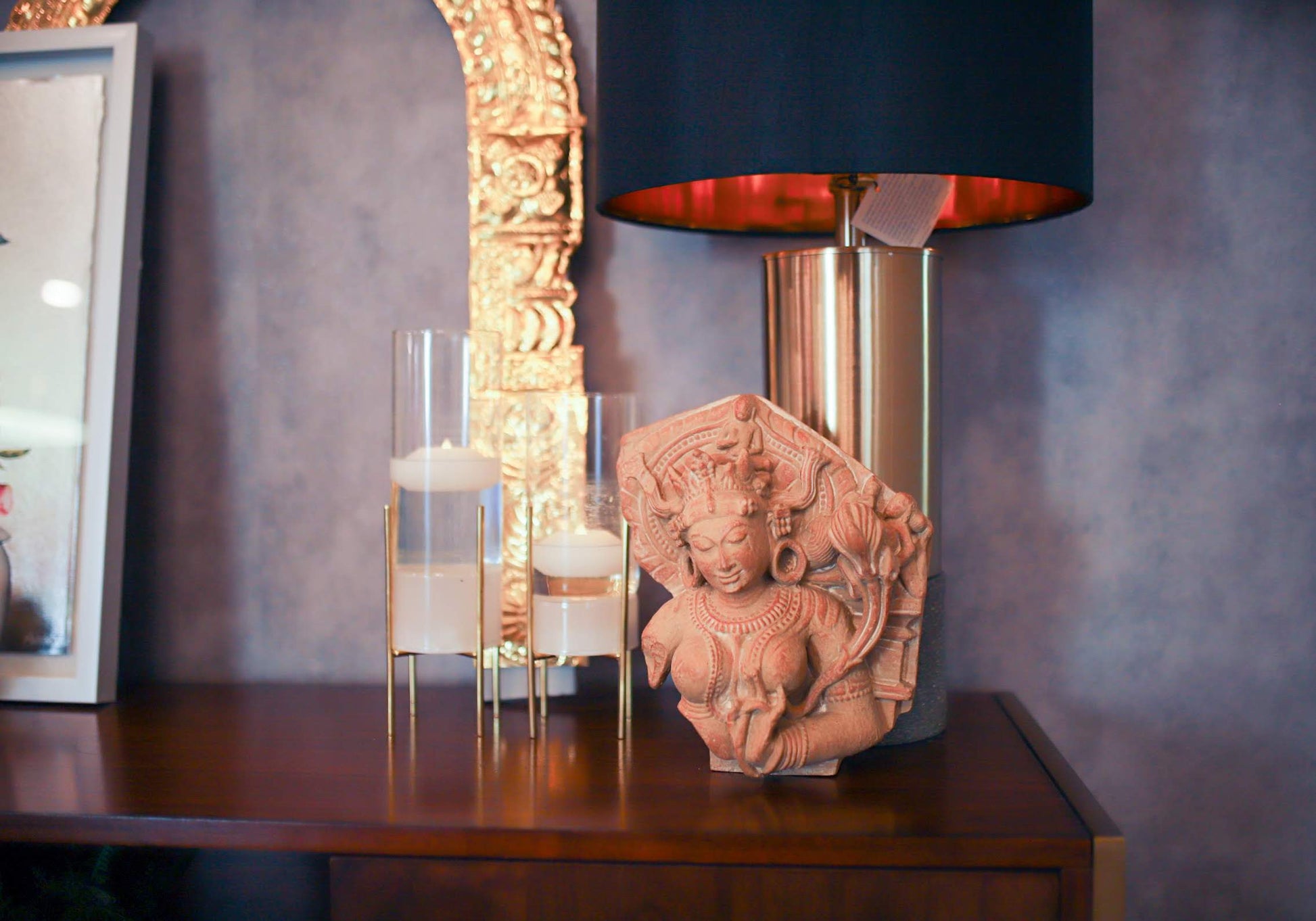 Place on a console or plinth with soft lighting (like a directional lamp or brass diya) to highlight the sculpture’s detailing. Style with brass bowls, marigolds, or incense holders for a meditative, temple-inspired corner — or juxtapose with modern minimal decor for a rich, curated contrast.