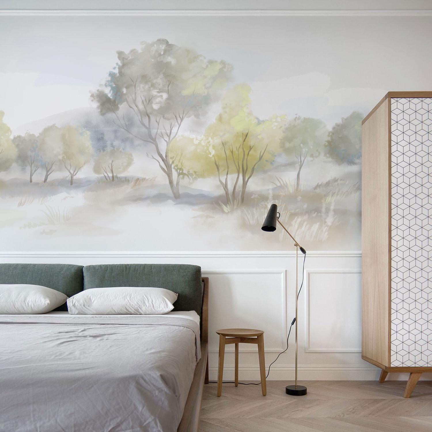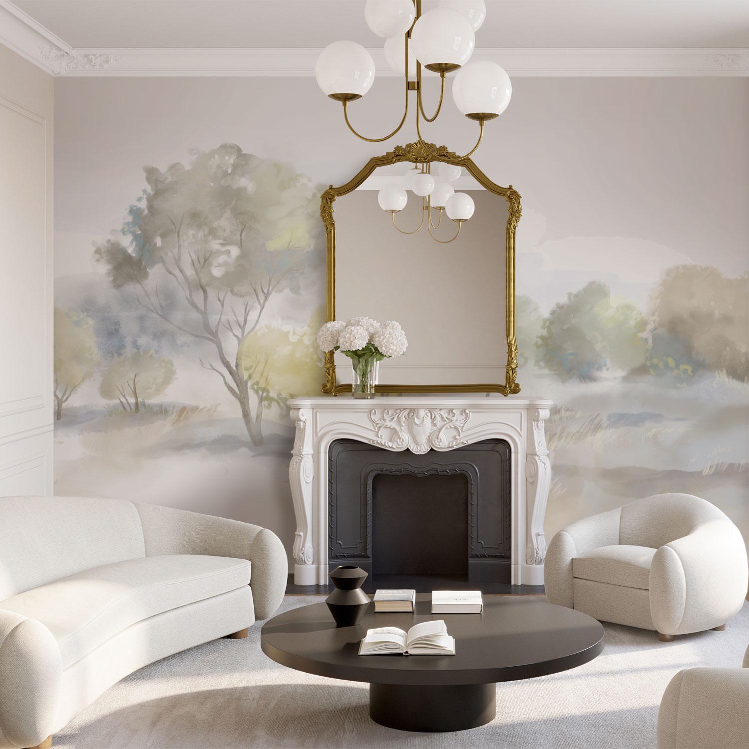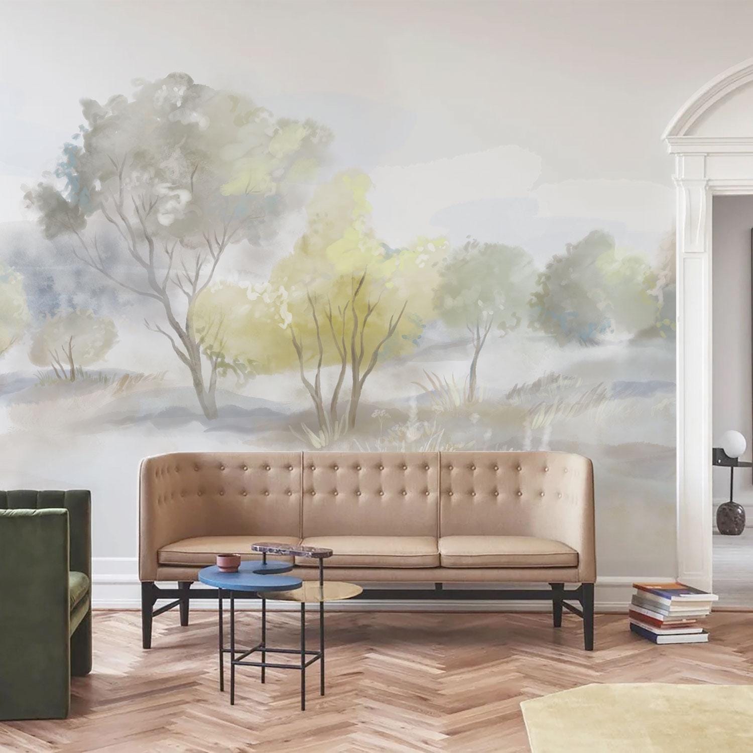 Bring the quiet beauty of distant hills into your home with this hand-painted mountain landscape mural. Featuring gentle ridgelines and an ombre wash of beige and soft white, this scenic wallpaper creates a serene backdrop that works in both modern and vintage-inspired interiors.
